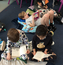 When the bell rang for ‘Drop Everything and Read’, the children spread out into cosy corners which they created with their blankets and cushions, some in the sunshine, to enjoy reading. Year 6 read to their Year R buddies, and it was wonderful to see everyone enjoying books in their own relaxing ways.