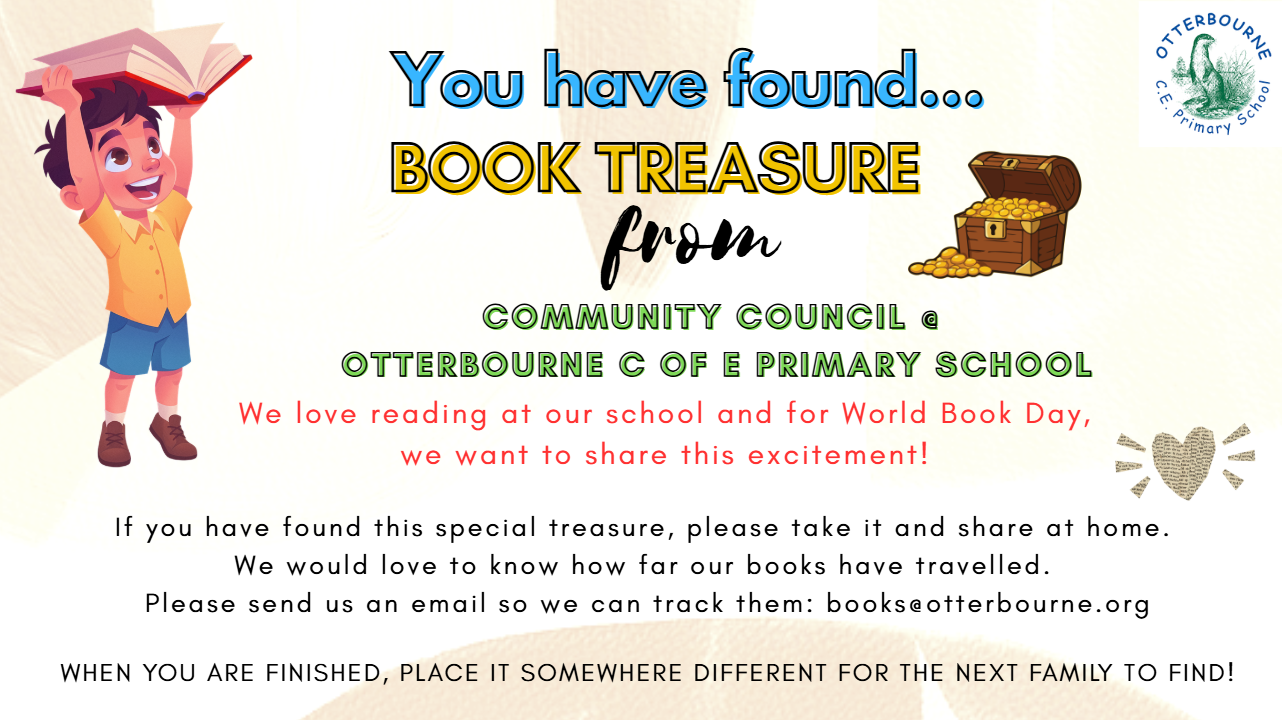 Once you’ve finished reading, please re-hide the book for another family to find. Better still, if you’re heading out of the village, take it with you and leave it somewhere new. Let’s see how far our books can travel! We’ll be tracking their journeys in school and can’t wait to see where they pop up next.